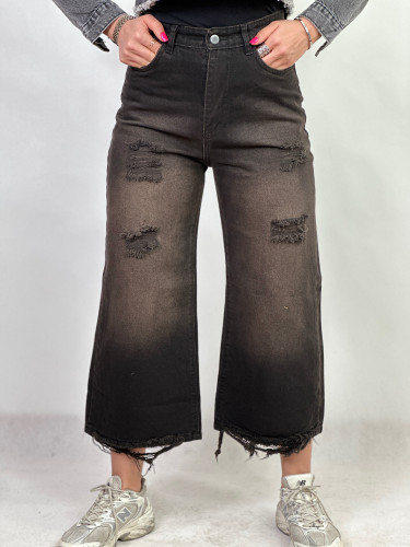 شلوار جین ذغالی واید لگ